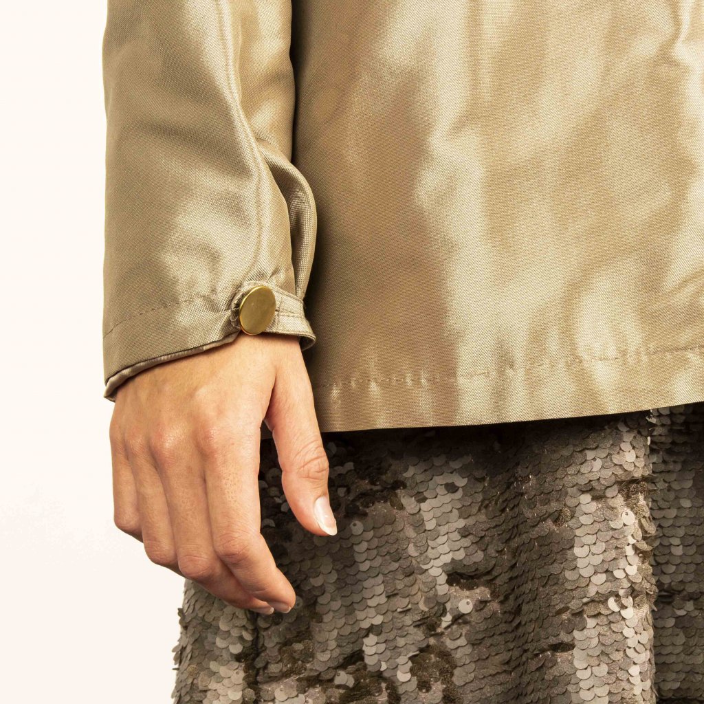 Bunda je z materiálu s příměsí kovového vlákna, které dává bundě zvláštní charakter. Bundu je vhodná do sychravých dnů, není však určena do přímých deštivých dnů.