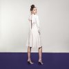 Šaty z žerzeje jsou přiléhavého střihu s rozšířenou sukní a maxi dlouhým rukávem s volánem. Šaty jsou kombinovány s hedvábným šifonem ve stejném odstínu a vytvářejí detaily ve střihu šatů. Záda šatů jsou hluboce rozstřižená a jemně překrytá hedvábnou vázačkou. Rukávy jsou zdobeny volány ze šifonu. Dokonalé zpracování šatů je v kontrastu na divoko střiženými hedvábnými částmi pro zachování lehkosti a vzdušnosti hedvábí.